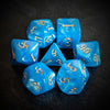 Adventure awaits with this set of 7 dice, featuring a 20-sided (d20) dice, a 12-sided (d12) dice, a 10-sided (d10) dice, a percentage (d00) dice, a 8-sided (d8) dice, a 6-sided (d6) dice, and a 4-sided (d4). Perfect for both seasoned adventurers and novice players alike.