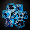 Adventure awaits with this set of 7 dice, featuring a 20-sided (d20) dice, a 12-sided (d12) dice, a 10-sided (d10) dice, a percentage (d00) dice, a 8-sided (d8) dice, a 6-sided (d6) dice, and a 4-sided (d4). Perfect for both seasoned adventurers and novice players alike.