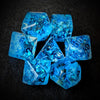 Behold a captivating collection of mighty warrior's dice, perfect for epic quests in the realms of tabletop role-playing. Crafted from swirling acrylics that blend together like a magical tapestry, these oversized dice exude a mystical aura that beckons adventurers to embark on thrilling campaigns.