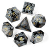 Adventure awaits with this set of 7 dice, featuring a 20-sided (d20) dice, a 12-sided (d12) dice, a 10-sided (d10) dice, a percentage (d00) dice, a 8-sided (d8) dice, a 6-sided (d6) dice, and a 4-sided (d4). Perfect for both seasoned adventurers and novice players alike.