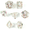 Adventure awaits with this set of 7 dice, featuring a 20-sided (d20) dice, a 12-sided (d12) dice, a 10-sided (d10) dice, a percentage (d00) dice, a 8-sided (d8) dice, a 6-sided (d6) dice, and a 4-sided (d4). Perfect for both seasoned adventurers and novice players alike.