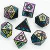Unleash your inner adventurer with this captivating set of dice designed for tabletop role-playing games. Each die features a mesmerizing blend of two vibrant acrylic colours, creating a whirlwind of excitement with every roll - it's like these dice have embarked on their own multiclassing journey.