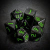 Adventure awaits with this set of 7 dice, featuring a 20-sided (d20) dice, a 12-sided (d12) dice, a 10-sided (d10) dice, a percentage (d00) dice, a 8-sided (d8) dice, a 6-sided (d6) dice, and a 4-sided (d4). Perfect for both seasoned adventurers and novice players alike.