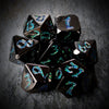 Unleash your inner adventurer with this stunning set of metal polyhedral dice, perfect for your next tabletop role-playing game quest. Crafted with intricate designs and a mesmerizing blend of colours, these dice are sure to captivate both you and your fellow players. The enamel coating on each die adds a layer of durability and protection, ensuring that these dice will remain beautiful and functional for countless gaming sessions. The elegant numerals on each face add a touch of sophistication, while the polished finish gives