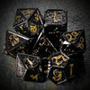 Adventure awaits with this set of 7 dice, featuring a 20-sided (d20) dice, a 12-sided (d12) dice, a 10-sided (d10) dice, a percentage (d00) dice, a 8-sided (d8) dice, a 6-sided (d6) dice, and a 4-sided (d4). Perfect for both seasoned adventurers and novice players alike.