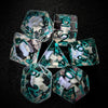 Experience the thrill of rolling the dice with this captivating set, perfect for all your tabletop adventures. Crafted with layers of colored resin, each die embodies a mystical essence that would impress even the most dark and powerful sorcerers.