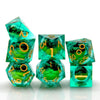 Green Eye Ball in Clear & Red Liquid Filled Sharp Resin - 7pcs RPG Dice Set