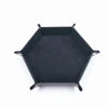 This hexagon dice tray features a hard insert and hard exterior, complete with a lid. A compact rolling altar suitable for all tabletop role-playing games, it combines colored velvet and PU faux leather with reinforced inner walls to create a durable rolling colosseum. Designed to deliver natural-20s for days, it also includes a dice observation area where other dice can witness the successes and failures of their brethren.