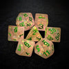 Begin your next epic journey with this stunning set of metal wash polyhedral dice. Each die features numbers with a captivating dragon scale pattern, adding a touch of mythical allure to every roll. Perfect for conquering fearsome beasts and embarking on legendary quests, these dice are your ultimate allies in the world of fantasy. Elevate your gameplay and let these enchanting dice bring your stories to life.