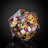 The dice features a striking combination of Gold, Clear resin and a Silver Font colour.