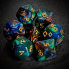 Adventure awaits with this set of 7 dice, featuring a 20-sided (d20) dice, a 12-sided (d12) dice, a 10-sided (d10) dice, a percentage (d00) dice, a 8-sided (d8) dice, a 6-sided (d6) dice, and a 4-sided (d4). Perfect for both seasoned adventurers and novice players alike.