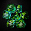 Adventure awaits with this set of 7 dice, featuring a 20-sided (d20) dice, a 12-sided (d12) dice, a 10-sided (d10) dice, a percentage (d00) dice, a 8-sided (d8) dice, a 6-sided (d6) dice, and a 4-sided (d4). Perfect for both seasoned adventurers and novice players alike.