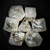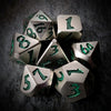 Step into your next adventure with this dazzling set of metal wash polyhedral dice. Each die is intricately designed with a delicate filigree pattern, adding a touch of elegance and mystery to every roll. Perfect for navigating enchanted realms and facing formidable challenges, these dice are your ultimate allies in the world of fantasy. Elevate your gameplay and let these exquisite dice bring your epic stories to life.