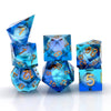 Green Eye Ball in Clear & Red Liquid Filled Sharp Resin - 7pcs RPG Dice Set